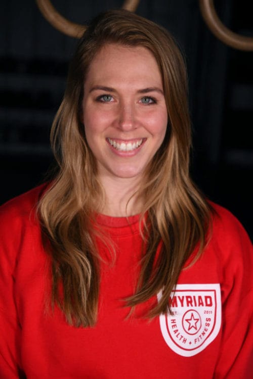 Kristina’s favorite movement is the squat, as she notes, squats can be an excellent metaphor for life, it’s all about getting up after weight brings you down. During the colder months, you can find Kristina reading a good book + snuggled up under the blankets. However in the warmer months, she + her boyfriend are often busy going to country-music concerts or taking trips to visit friends. You may not know this about Kristina, but when she is not coaching at Myriad she is a proud CVICU/ECMO nurse at Riley: