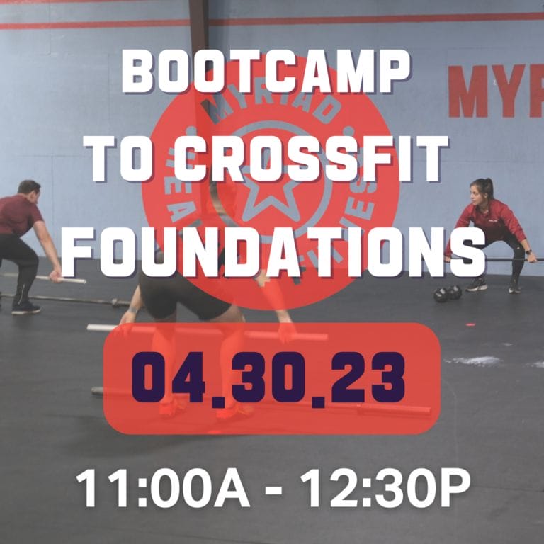 Join us for another round of Bootcamp to CrossFit Foundations! This is a fast and easy way to transition from our Bootcamp program into CrossFit. You will learn and review the barbell movements that are specific to our CrossFit program that we do not practice in Bootcamp classes. This is a group environment with a low athlete to coach ratio to make sure you stay safe and feel as confident as possible in the movements! After the session, you will have a few options to move into CrossFit classes depending on how comfortable you felt with the movements.Β SIGN UP HERE